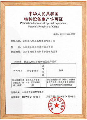 資質(zhì)證書號(hào):壓力容器制造證:TS2237S03;鍋爐制造許可證:TS2137116